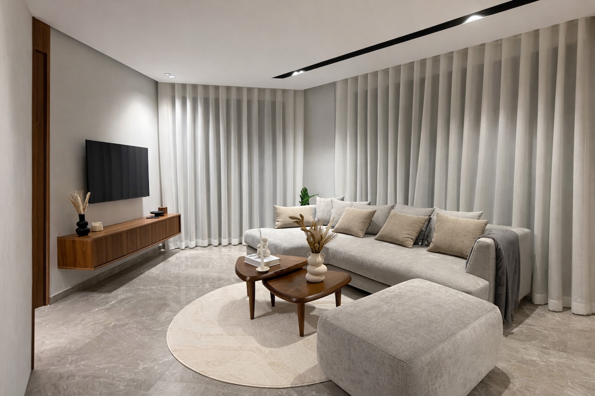 Butterfly 703 🦋, un havre de paix où l'élégance d'une résidence moderne s'allie au confort des hôtels 5* en plein cœur de Casablanca ! Relaxez-vous dans un salon spacieux au design moderne, équipé d'une Smart TV 55’ avec Netflix et IPTV pour des soirées de détente absolue. La chambre, véritable nid douillet, vous promet des nuits paisibles et réparatrices ☁️ Depuis votre balcon privé, admirez les splendides couchers de soleil sur la ville, rendant chaque moment de votre séjour inoubliable ! ✨