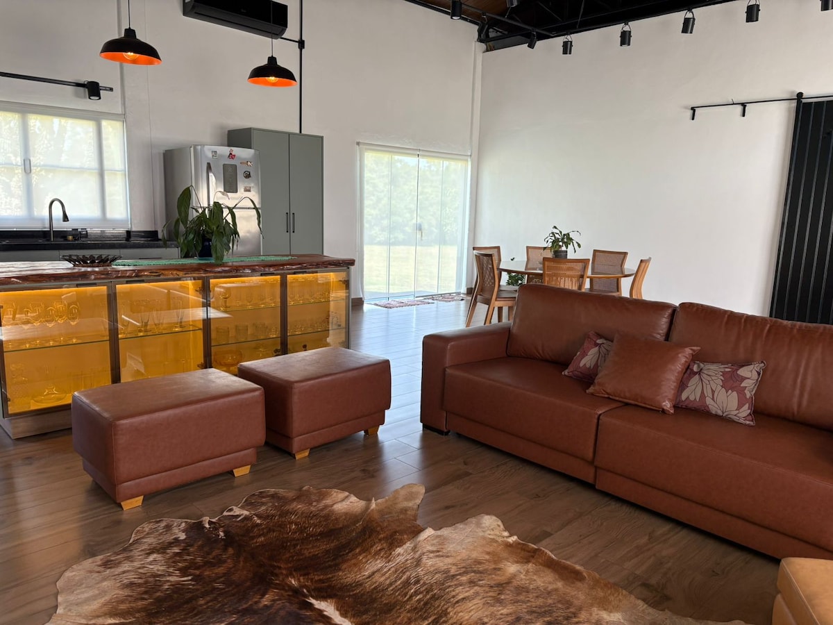¡🏡 Cabaña encantadora! • Ideal para parejas o viajes de negocios/oficina en casa. • Dormitorio con chimenea, aire acondicionado, TV inteligente, minibar. • Sala de estar con estufa de leña, ideal para preparar cenas con amigos. • Cocina equipada con utensilios, con todo lo necesario. - Hay otra casa en el patio, pero la entrada de acceso y el espacio de la casa, el patio son totalmente exclusivos para los huéspedes y con privacidad. • Jardín, fogata Excelente 📍 ubicación: a 7 minutos de Shopping Catuaí