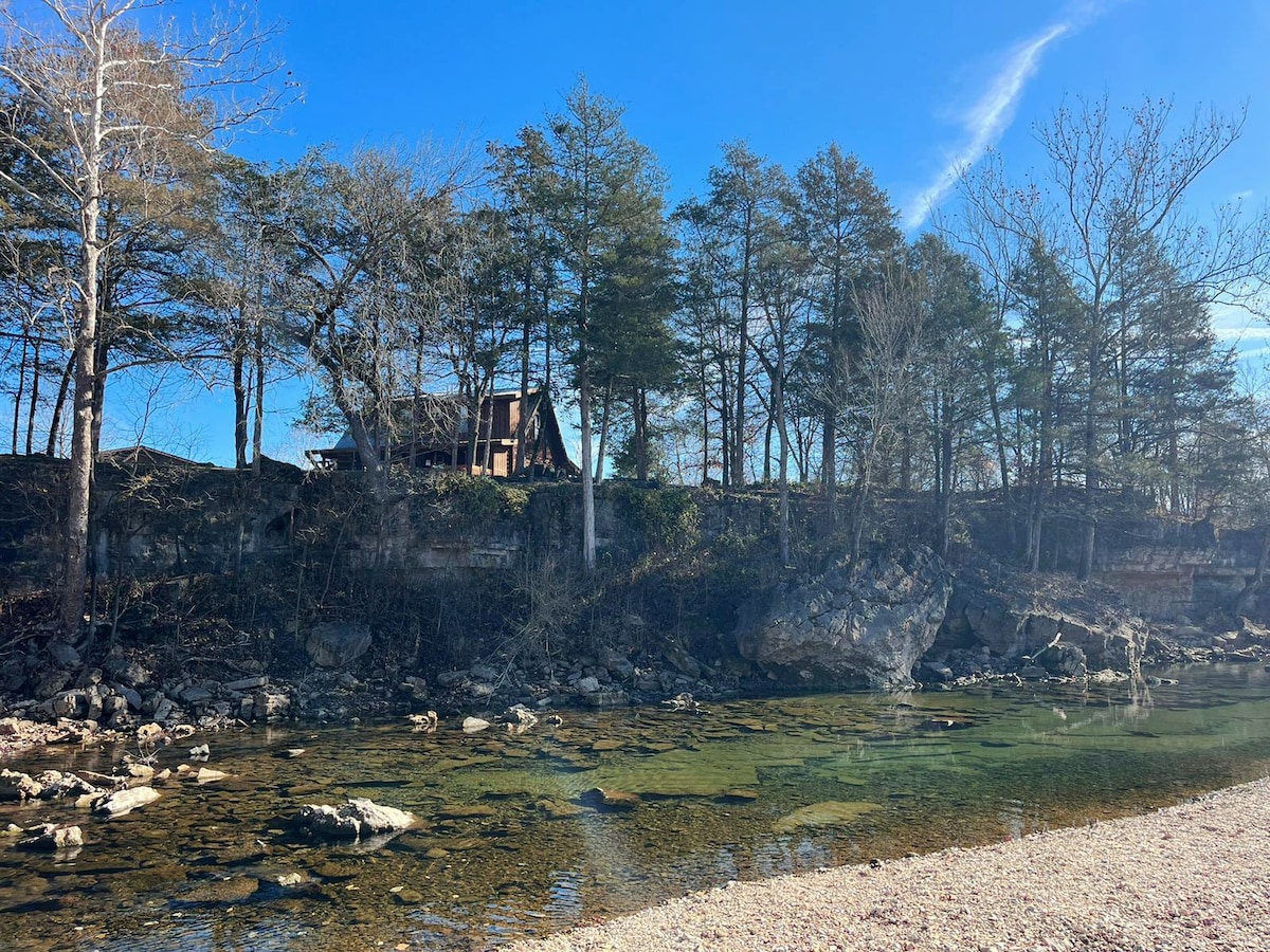 Hardwoods throughout this is a gorgeous, remote, 2-story, log-sided, waterfront bluffed lakehouse on 4 acres overlooking Table Rock Lake. We are a pet-free and smoke free getaway on the Missouri/Arkansas border near multiple water and tourist attractions between Roaring River State Park, Eureka Springs, & Branson. Includes 15 foot movie screen room, 14’ shuffle board table, grill, yard games, wooded acreage, & firepit. Water Not Accessible from Property
