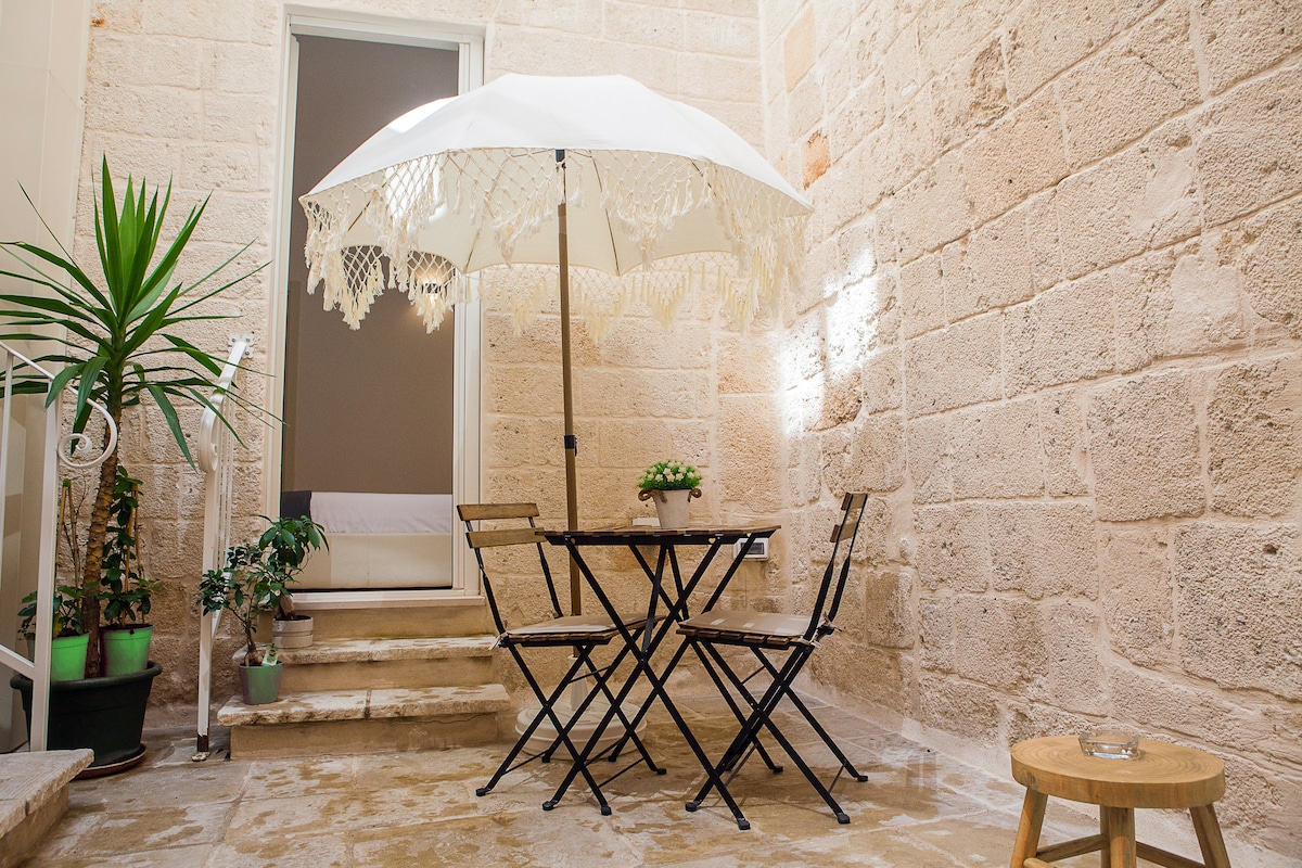 Una suite nel cuore del centro storico con le volte a botte e pavimento d’epoca. Finemente ristrutturata nel rispetto della sua essenza, senza trascurare i comfort per rendere unico il vostro soggiorno. Uno splendido terrazzo con vasca idromassaggio è pronto ad ospitare aperitivi e cene, in una location suggestiva ed intima. Le scale che conducono alla Suite e poi al terrazzo sono quelle tipiche del centro storico! Un po’ ripide alla vista, ma dotate di idonea illuminazione e doppio passamano!
