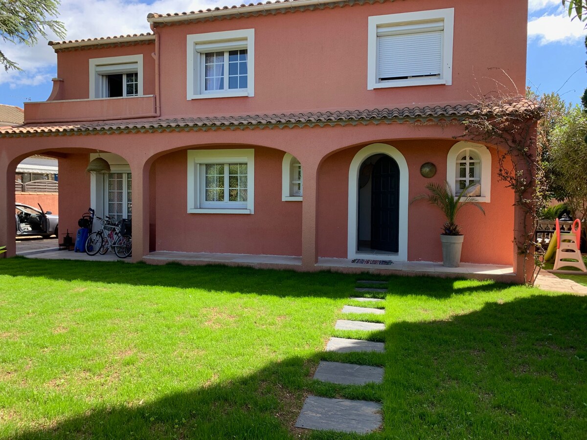 Beau studio de 20m² climatisé, avec une entrée rien que pour vous et son jardin privatif dans villa idéalement située proche plages de Carnon, Palavas et La-Grande-Motte. A proximité des commerces, de l'Arena, du parc des expos et du tram qui vous conduira au centre de Montpellier. Deux vélos sont mis à votre disposition avec un chèque de caution rendu à la fin du séjour. Nombreuses pistes cyclables aux alentours.