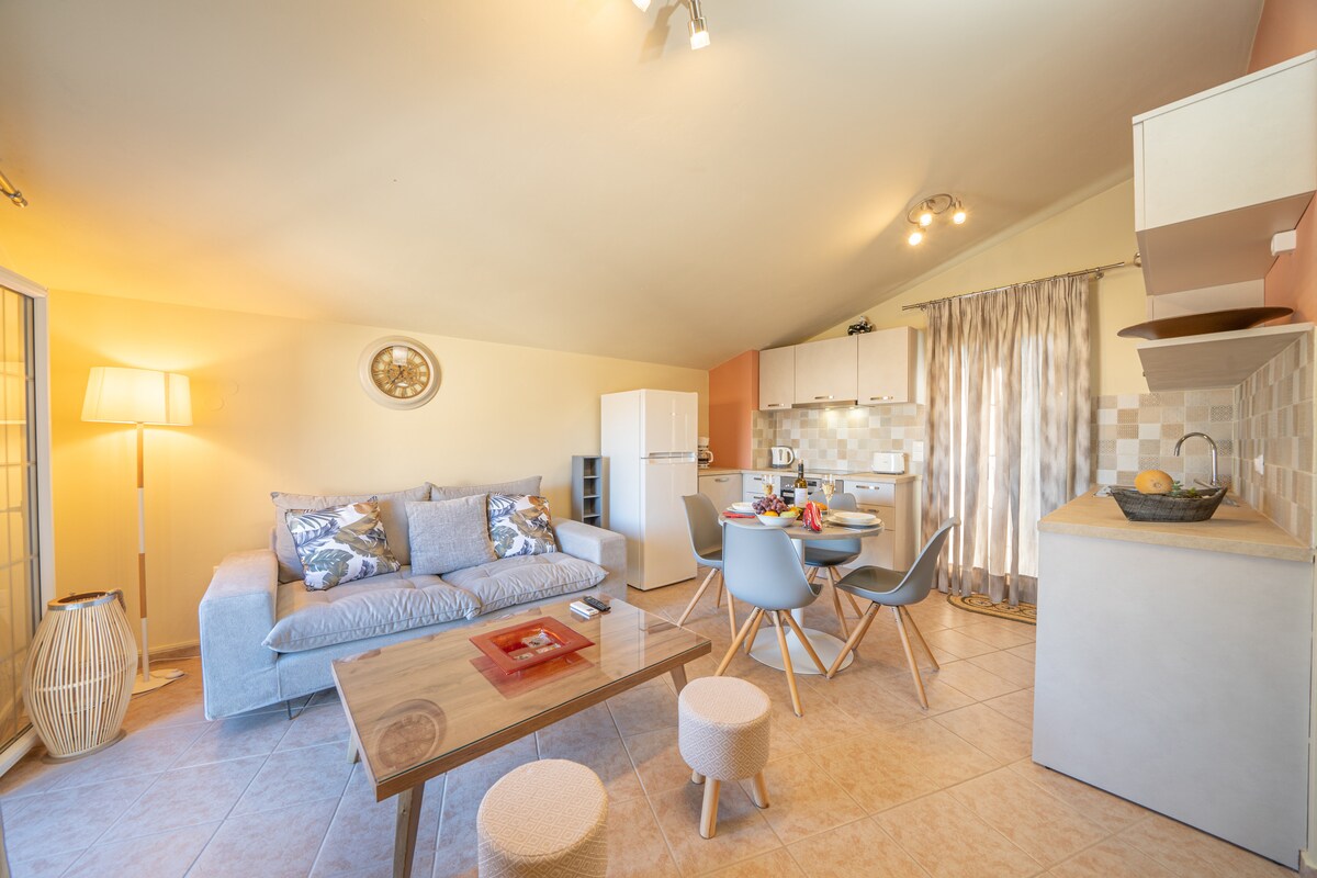 Meliti es una casa de campo de una planta que consta de 1 dormitorio con capacidad para 2 personas con baño privado. Puede alojar a 1 huésped adicional en el sofá cama de la sala de estar, o un máximo de 2 niños. La casa ofrece increíbles vistas al mar desde todas las áreas, especialmente la vista desde la cama será memorable. Relájate en la acogedora sala de estar, prepara la cena o relájate en los muebles exteriores disfrutando de una serenidad total, así como del relajante sonido del mar.