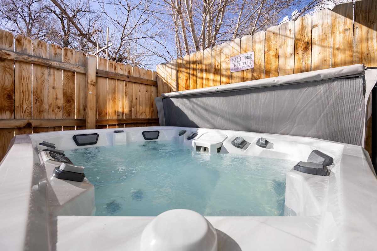 Esta hermosa casa privada se encuentra en una ubicación privilegiada, a solo dos manzanas del centro de la ciudad, pero con un ambiente de barrio completo. ¡Jacuzzi privado! ¡A poca distancia a pie de restaurantes y cafeterías! Dos camas se encuentran arriba. Cocina totalmente equipada para que sea fácil cocinar fuera de casa. Patio privado vallado con asientos y parrilla. Smart TV y wifi disponibles. Artículos para familias y niños disponibles bajo petición. ¡El fácil acceso a la autopista y la ubicación céntrica dentro de la ciudad harán que ser turista sea fácil! *propiedad para no fumadores*