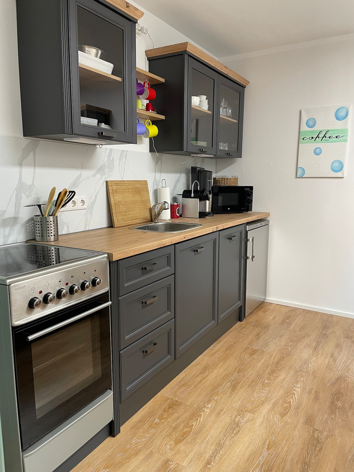 Willkommen in unserer familienfreundlichen Wohnung! Sie bietet zwei Schlafzimmer und fünf Schlafmöglichkeiten: ein Kingsize-Bett, zwei Einzelbetten sowie ein praktisches Ausziehbett. Ein Babybett ist ebenfalls vorhanden. Der helle Wohnbereich mit TV, RTL+und WLAN lädt zum Entspannen ein. Außerdem gibt es eine kleine Terrasse. Die Wohnung liegt ruhig, in der ersten Etage und ist gut angebunden.Die Wohnung ist neu möbliert und bietet alles ,was Sie brauchen