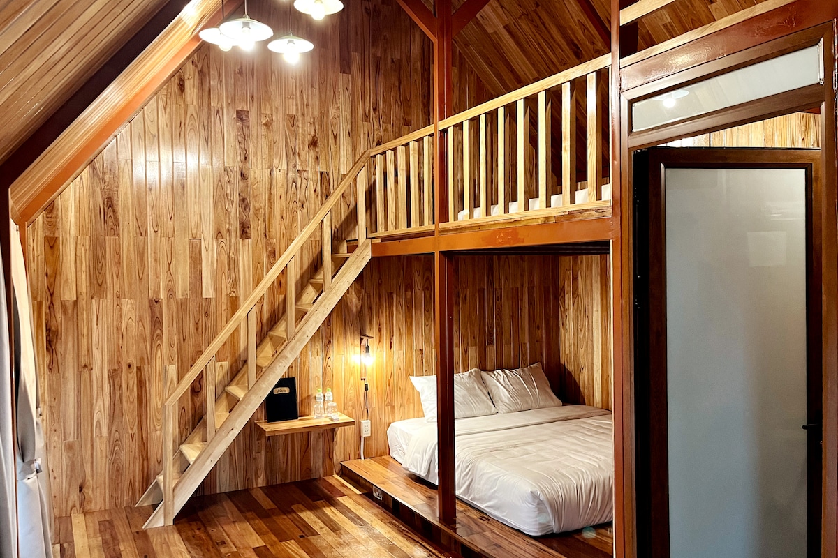 Cat Ba Serena Homestay offers a peaceful retreat in Khe Sau Village, central Cat Ba Island. Next to Hospital Cave and just 10 minutes to Cat Ba National Park and town, our property sits on 3,000 m² of lush land with a swimming pool, natural stream, and private hiking trail. The bungalow is called Superior Bungalow With Swimming Pool and Garden View in the retreat. Enjoy authentic Vietnamese dining at our restaurant, cocktails at the bar, and easy access to Lan Ha and Halong Bay excursions.