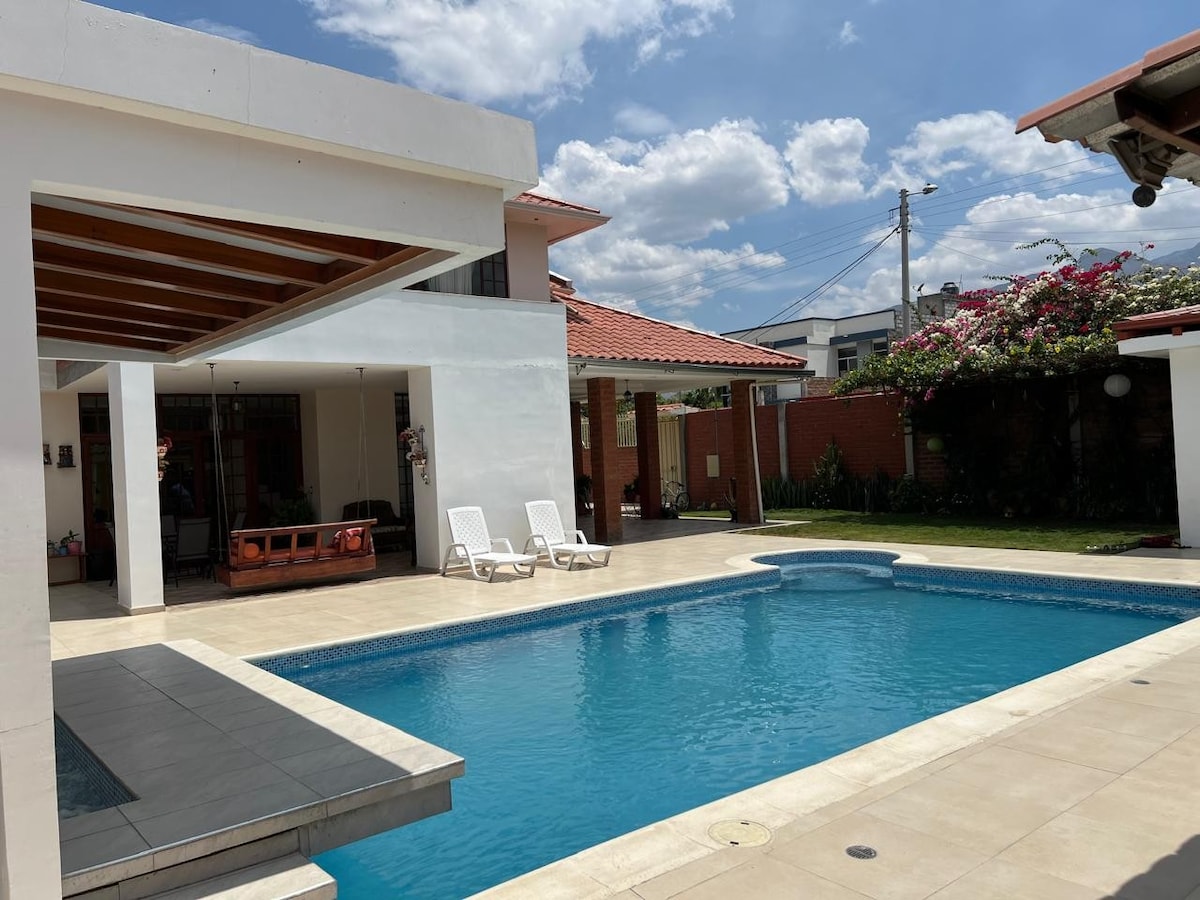 La mejor casa en la ciudad del eterno sol, su ubicación permite disfrutar de la naturaleza y en pocos minutos estar en el centro. Ubicada a 5 minutos del aeropuerto y a 45 minutos de la Basílica del Cisne. Capacidad 10 personas (max12) y se aceptan mascotas. La casa tiene amplios corredores, 2 salas internas, 4 salas externas, 3 amplios dormitorios, 3 baños completos, ducha externa, cocina completamente equipada, piscina, hidromasaje, área de bbq, lavandería, área verde y garaje para 3 carros.