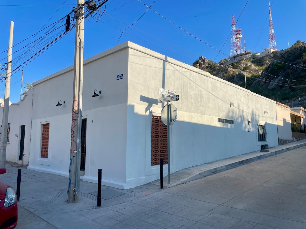 Flor de Nopal es un espacio con acceso independiente en el centro histórico de Hermosillo, dentro de Casa Cactácea. Rodeada de plantas y luz natural que invitan al descanso, es ideal para una o dos personas. A pasos de: - Colegio de Sonora - Universidad de Sonora - Centros, oficinas y palacios de Gobierno (MX y EU) - Centro histórico y comercial - Central de camiones - Restaurantes, cafés y parques - Zona nocturna Un espacio con alma, historia e identidad, siéntete como en casa.