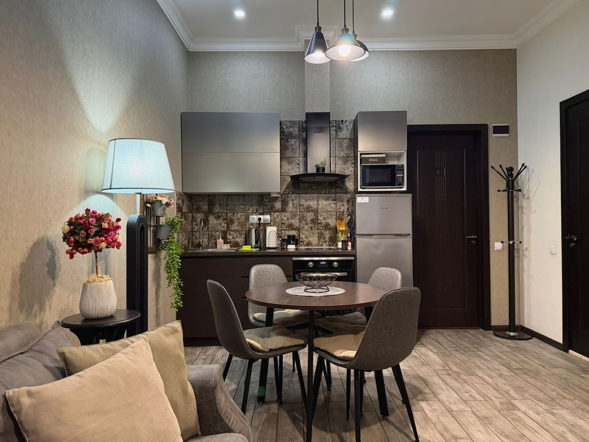 Apartamento moderno y elegante a estrenar en el corazón de la ciudad, el casco antiguo de Tiflis. La propiedad se encuentra en la calle central recién reformada en el nuevo edificio. Hay muchos restaurantes y tiendas en los alrededores. La calle está libre de coches. El cómodo aparcamiento está justo debajo de la casa. Las principales atracciones se encuentran a poca distancia a pie. El lugar es muy seguro, la calle y la casa están vigiladas. ¡Lugar atractivo para todos, familias con niños, parejas jóvenes o viajeros de negocios!