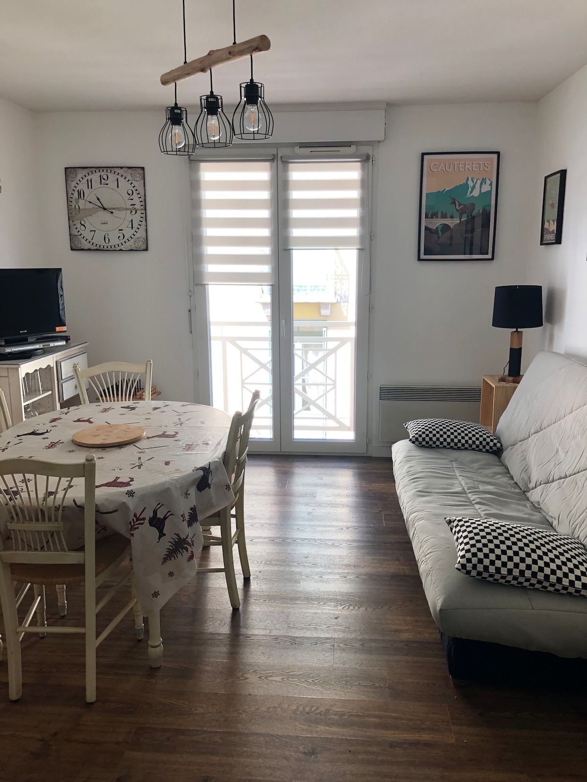 Apartamento luminoso y luminoso, situado en pleno centro de la ciudad cerca de todo, telecabina del Lys, las termas de César, oficina de turismo, baño de rocas con vistas a las montañas y al gave desde las ventanas del apartamento. idealmente 4 personas, posible 6. No se proporcionan sábanas de cama, cocina y aseo. Alcoba con literas para 1 persona, zona de dormitorio, zona de cocina, muchos armarios empotrados. Equipamiento para bebés en el lugar. 1 armario de esquís individual Alquiler fin de semana / semana / cura