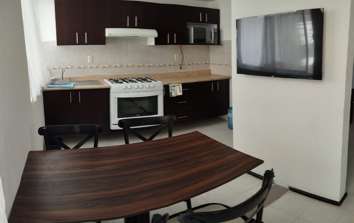 ¡Bienvenidos a nuestro acogedor refugio familiar! Ubicado en una zona segura, nuestro Airbnb es ideal para una estancia relajante en familia. Ofrecemos: -Espacios Cómodos: 2 habitaciones, 1 baño completo, cocina equipada y sala de estar acogedora. -Ubicación Conveniente: Cerca de tiendas, restaurantes, parques y transporte público. -Comodidades: Wi-Fi, servicio de streaming (Disney, Amazon Prime, claro video, Roku), cámara de seguridad y más. ¡Esperamos recibirte pronto!