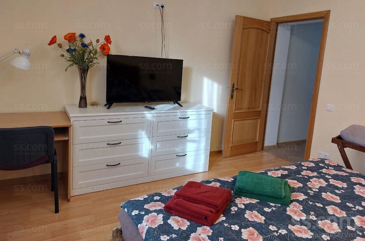 Un moderno apartamento de dos habitaciones en el centro de Jelgava con vistas a Ozolskvērs. Un parque infantil, cafeterías y transporte público están a poca distancia a pie. El dormitorio tiene una cama doble, la sala de estar cuenta con un televisor con Netflix, una cocina, un baño y una lavadora. Proporcionamos toallas, ropa de cama y, si es necesario, concedemos permiso para estacionar en el patio. ¡Ideal para 2–3 huéspedes! Se encuentra a 43 km de Riga y a 47 km del aeropuerto de Riga.