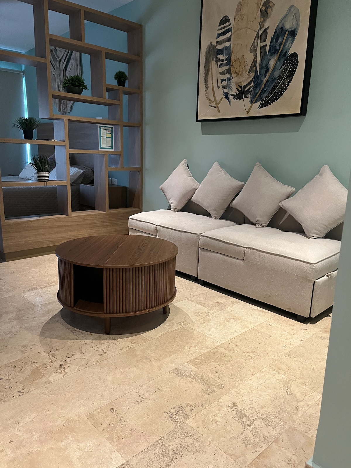 Hermoso estudio, con preciosos detalles mexicanos, pisos de mármol frescos e iluminación acogedora. Cuenta con cama King-size ideal para parejas, con sabanas de alta calidad para un perfecto y reparador descanso. Cocineta equipada, cafetera, microondas. El área de balcón cuenta con una mesa para disfrutar amaneceres y atardeceres inolvidables, disfruta de Smart TV de 50", A/C mini Split, conexión WIFI de alta velocidad, accesos digitales al edificio habitaciones y área de lavado, entre otros.