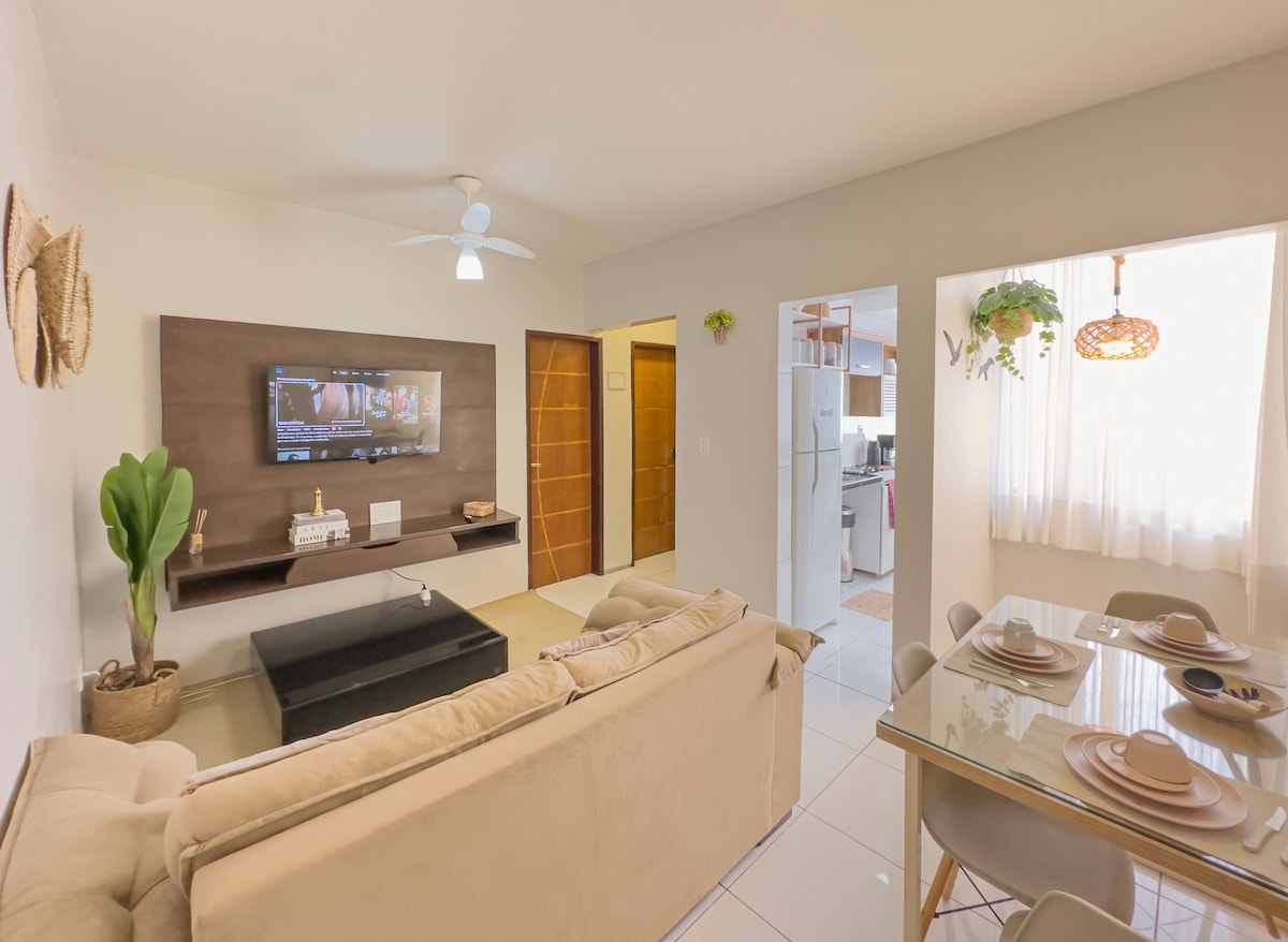 Apartamento 100% nascente, muito ventilado, de 57 m² com 2 quartos, sendo uma suíte, (2 banheiros) totalmente projetados e mobiliados. Com garagem. Localização estratégica: a 10 min da rodoviária, 14 min aeroporto, 5 min do shopping e 15 min das praias. Segurança, comodidade e muita ventilação, além de uma varanda perfeita para relaxar. Possui elevador. Condomínio solicita documento oficial com foto para cadastro de acesso. A recusa no envio impede a entrada e pode cancelar a reserva.