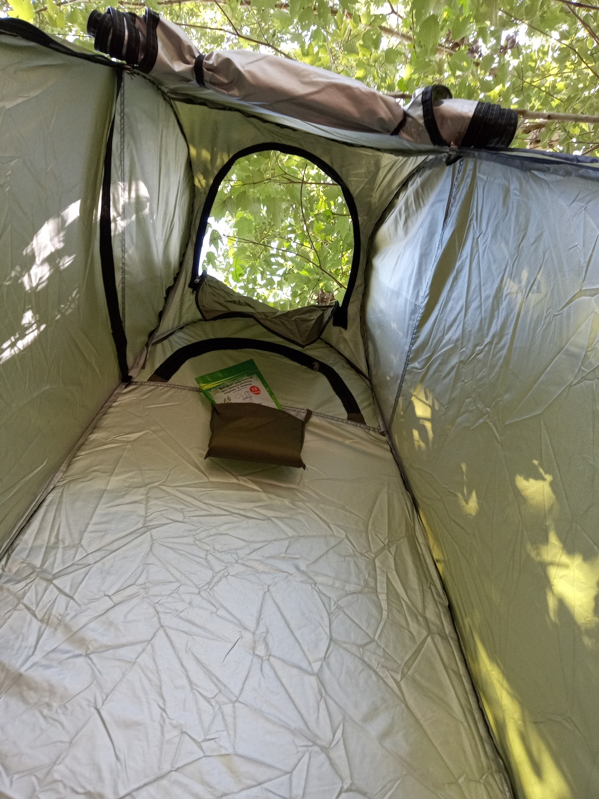 Tienda de campaña en un olivar.