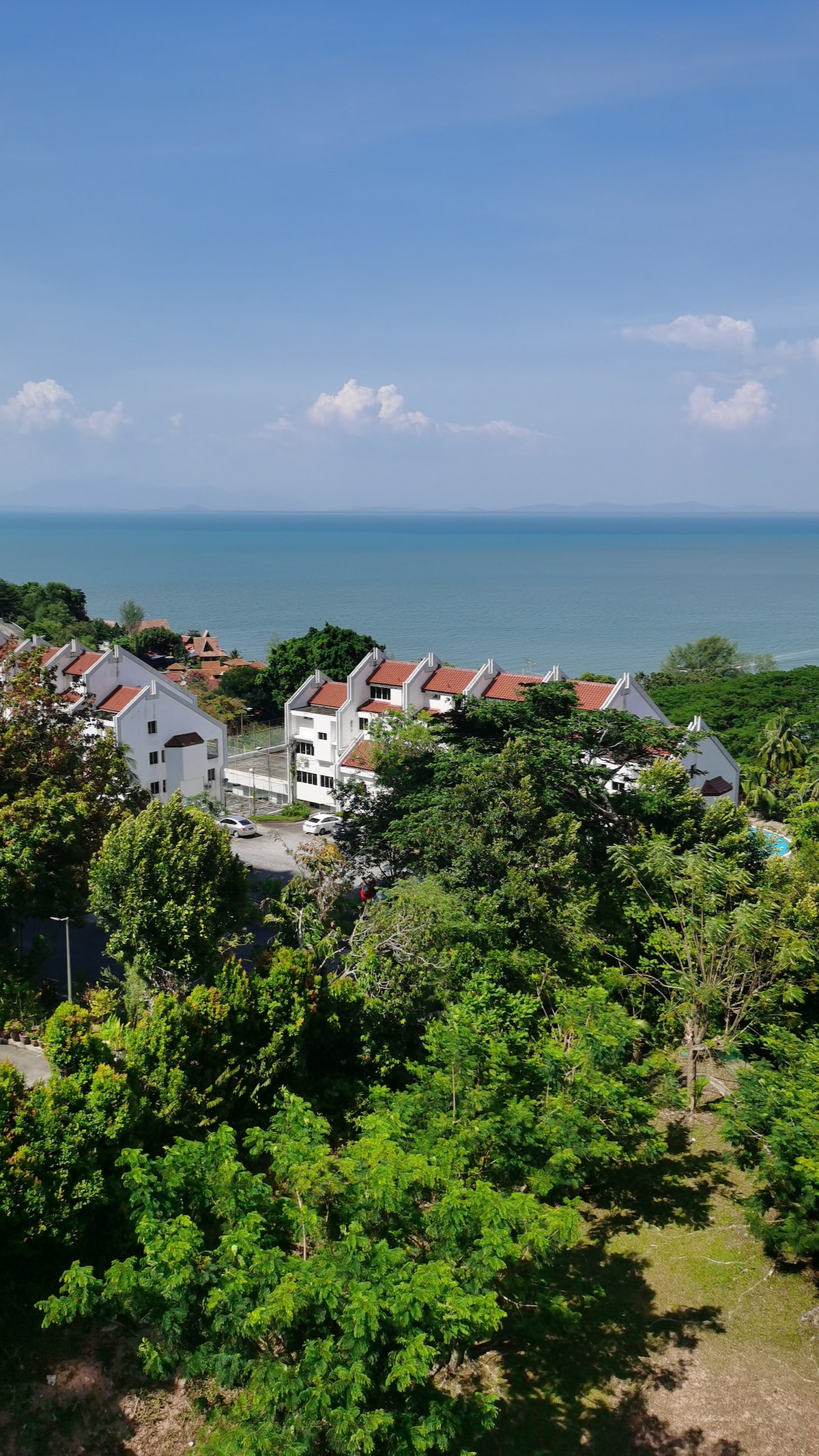 Disfruta de una vista impresionante al mar desde el enorme balcón, relájate con Netflix. Situado cerca de Gurney Plaza y rodeado de muchos restaurantes, tiendas de comestibles y tiendas de conveniencia. • A 8 minutos de Gurney Plaza. • A 27 minutos de Escape Park. • A 12 minutos del Jardín Botánico. - 2 camas tamaño queen (dormitorio principal). - 1 cama individual de Ikea con 2 colchones individuales. 1 aparcamiento gratuito. Si tienes coches adicionales, el aparcamiento de pago es muy seguro y tiene un precio razonable. La casa se encuentra encima del centro comercial «Straits Quay Retail Marina».