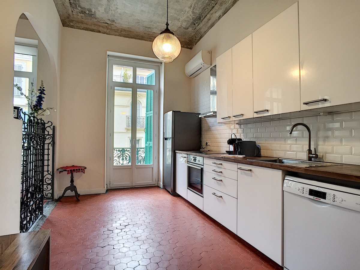 Déjese seducir por este suntuoso apartamento de 2 dormitorios y dos baños en el barrio del casco antiguo de Niza. Un sublime fresco de época en el techo y muebles de diseño le dan a esta joya un ambiente excepcional. El espacio combina el encanto provenzal y el diseño contemporáneo. La cocina totalmente equipada le invitará a preparar deliciosas comidas. Este elegante establecimiento, idealmente ubicado en las pintorescas calles, está a dos pasos de la playa y del patio saleya.