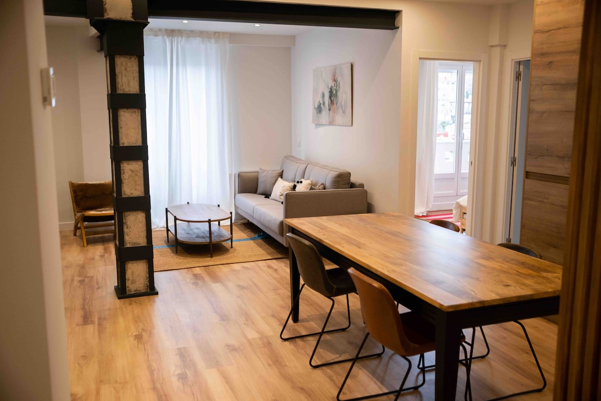 Amplio apartamento de 59 metros y aire acondicionado ubicado en el centro de la ciudad, perfectamente comunicado con el resto de la ciudad, situado a 2 minutos caminando de la plaza del ayuntamiento y 6 minutos a la estación de autobús y tren. Cómoda localización cerca de tiendas, restaurantes, museos e incluso playas.