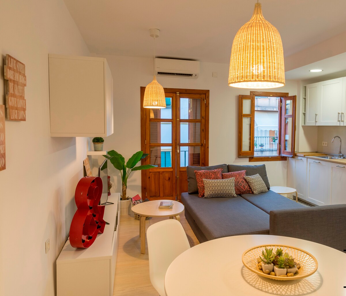 Precioso y luminoso apartamento, localizado en un barrio tradicional y lleno de vibrante vida social, El Arenal. Solo a 250 m de la Catedral y Plaza de Toros (Maps). Dispone de un salón con 2 balcones a la calle, un dormitorio tranquilo interior con cama de 1,8x2 metros, baño con ducha y cocina completa con todos los utensilios. Sábanas y Toallas siempre incluidas.