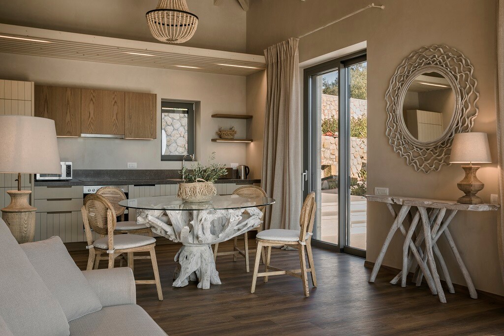 Ocurriendo una posición privilegiada en la tranquila aldea rural de Paliolinos, con vistas a la isla de Dias y con increíbles vistas al atardecer, las villas exclusivas de Zeus con sus hermosas fachadas de piedra, que reflejan un entorno tranquilo y su alma moderna y mínima, son un refugio de verano ideal para familias grandes y fiestas que favorecen la serenidad, la vida sofisticada y el diseño de alta gama.