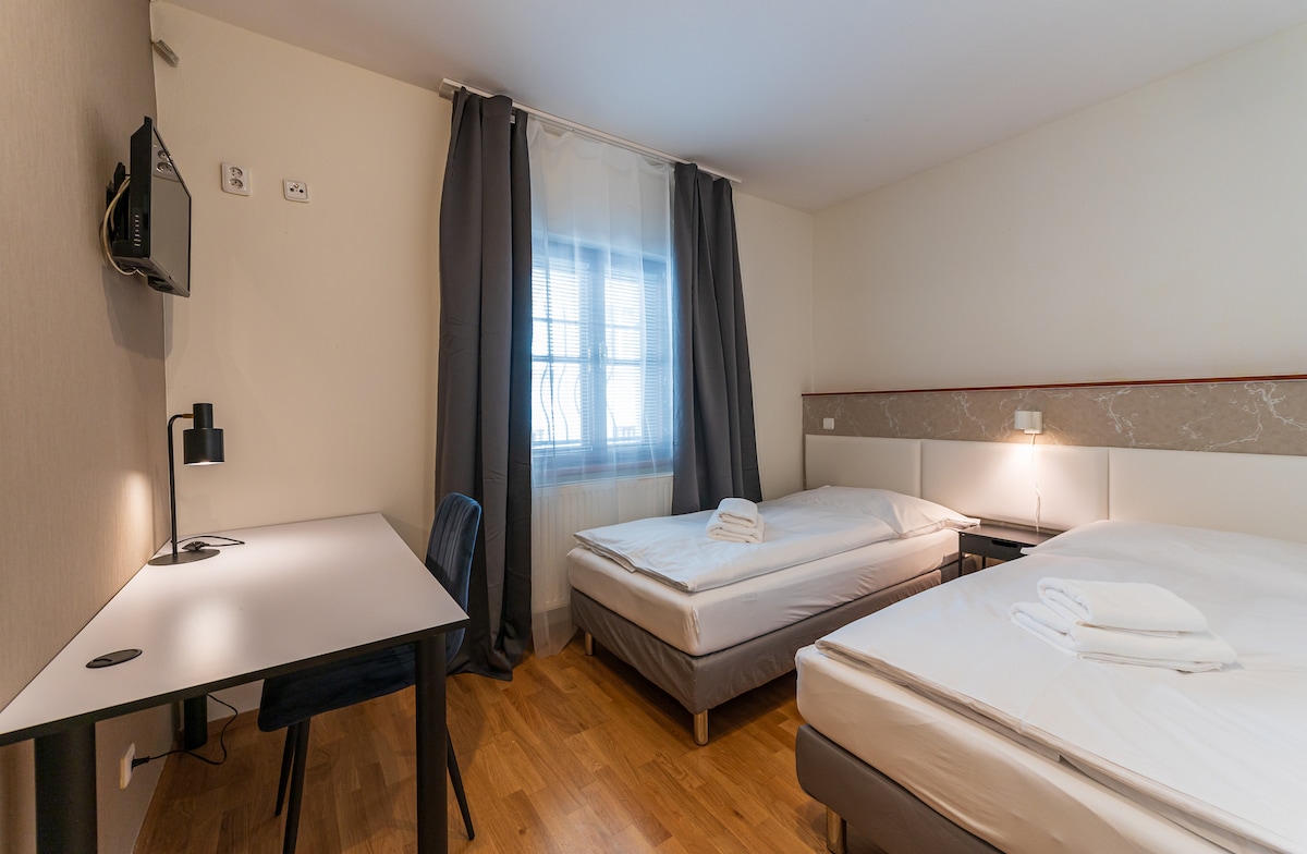 Moderno loft funcionalista con vistas al castillo y a la ciudad, a 10 minutos a pie del casco antiguo, aparcamiento gratuito delante de la casa o garaje cerrado si es necesario por un cargo adicional, solo se permite fumar en la terraza, no apto para sillas de ruedas (escaleras), ideal para 4 o 5 adultos o máx. 7 personas si viajas con niños. Cocina bien equipada (tetera, cafetera…).