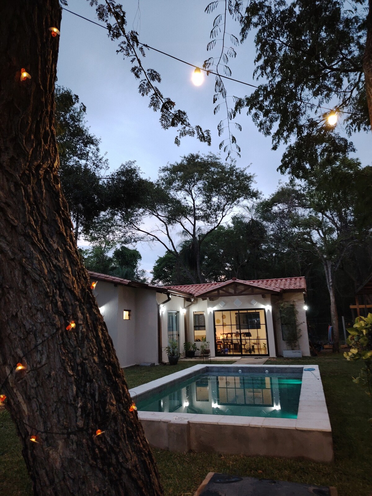 Acogedora suite rodeada de frondosos árboles, pileta y parrilla, ubicada en zona del Anfiteatro a pasos de supermercados, restaurants, bares y lugares turísticos para disfrutar de lo mejor de Sanber! Cuenta con todas las comodidades para descansar, cocinar, trabajar y pasar un buen rato. El lugar nace de la visión de conjugar una vivienda de estilo ecológico con un entorno muy natural, con árboles nativos de gran porte y varias especies de aves que frecuentan el lugar.