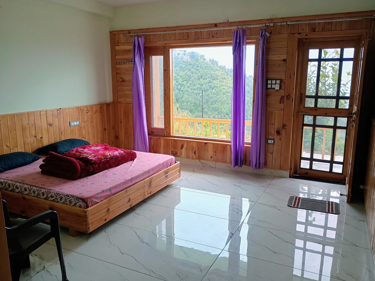This is a ground floor room. Views from all rooms are equally good. All amenities inside all the rooms are similar. You won’t want to leave this charming, one-of-a-kind place. Far away from the crowd and just 10 minutes drive from tiger fall. For peace quiet and complete relaxation.