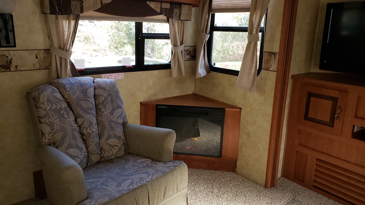 Acomódese cómodamente en esta caravana rústica y disfrute tranquilamente del tiempo que pasa contemplando el río. Disponible del 1 de junio al 15 de octubre.