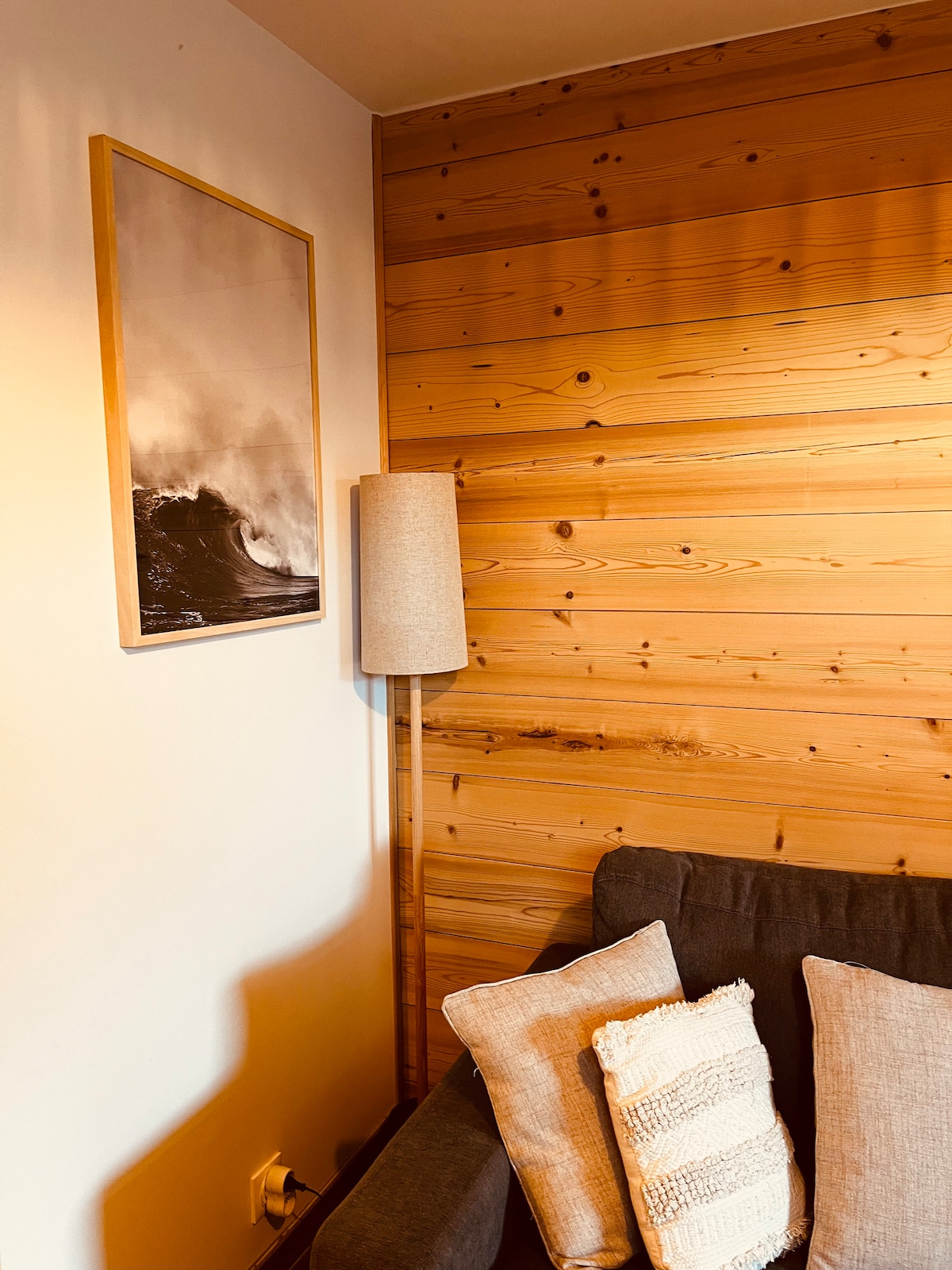 Vivienda nueva, moderna y acogedora. Ideal para 2 parejas o una familia con 3 niños. Tiene 2 dormitorios con baño, una gran sala de estar con cocina, un altillo con zona de TV y una terraza con baño nórdico de acceso libre y privado. Las camas están hechas a la llegada y se proporciona la ropa de cama. El chalet se encuentra en la aldea de las Marcas, a 3 km de la estación. Ponemos a vuestra disposición un aparcamiento cubierto en el centro de la estación.
