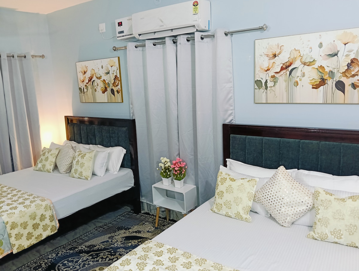 Experimentá el lujo y la comodidad en una elegante villa exclusiva para familias, ubicada en una ubicación de primera. Nuestro alojamiento recientemente renovado cuenta con: - Un dormitorio amplio y con aire acondicionado (238 pies cuadrados) con dos camas tamaño queen (78x60 pulgadas) y colchones premium de 8 pulgadas. - Un baño privado bien equipado - Una cocina totalmente equipada. - Una sala de estar. Disfruta: - Privacidad inigualable - Excelente ubicación cerca de centros de TI, hospitales y centros comerciales. - Jardines y alrededores tranquilos. - Personal de apoyo disponible