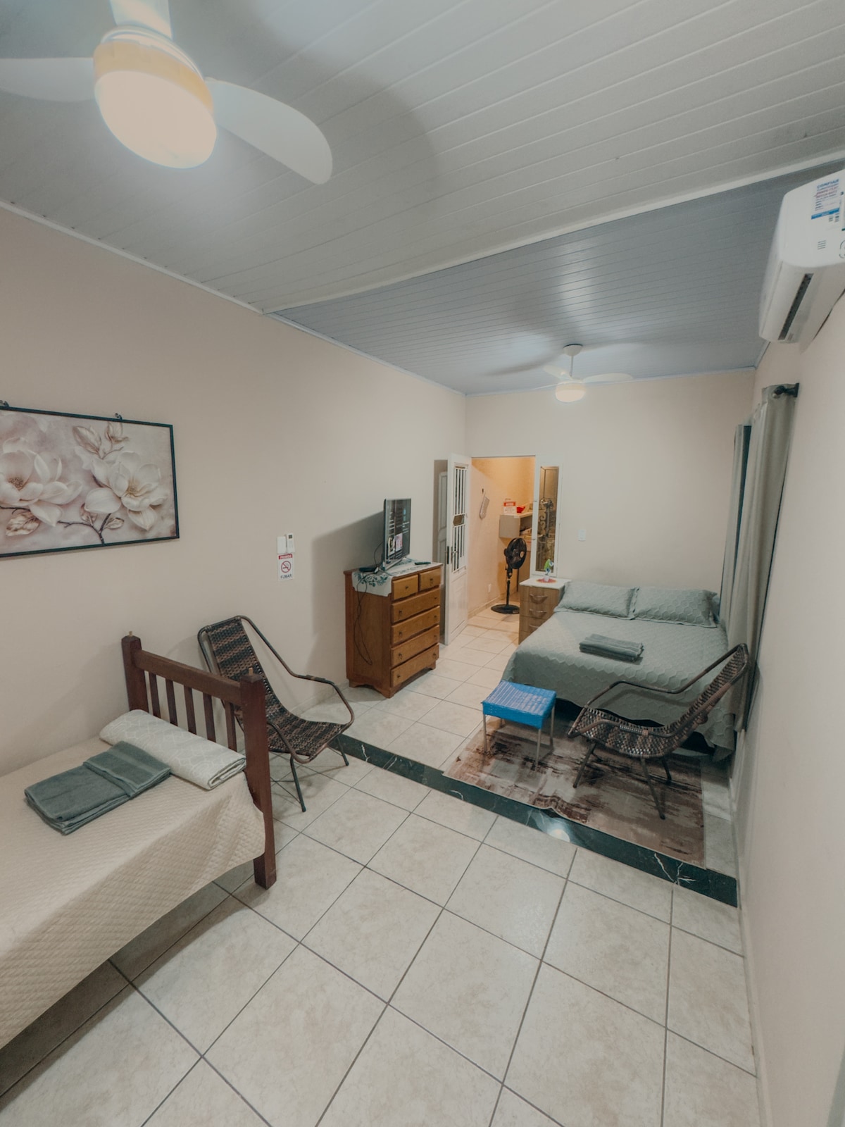 Privacidad total, check-in sencillo y la mejor ubicación en Cuiabá: a pocos minutos de la estación de autobuses, el centro político administrativo, las compras de Pantanal y el centro. Ideal para viajes rápidos, citas de trabajo, citas médicas o exámenes y competencias. El piso es exclusivamente para ti, con una entrada independiente, Wi-Fi estable, aire acondicionado silencioso, un escritorio y una cama cómoda.