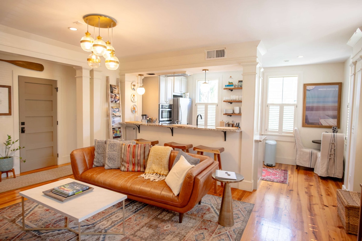 No detail was overlooked in the renovation of this historic home in Charleston's Cannonborough neighborhood, featuring beautifully restored hardwood floors, a custom-kitchen with high-end finishes, refurbished claw foot tub, original beam work & more. This second-floor rental features a king bed with all the comforts of a boutique hotel (high-end linens, quality bath products & towels, hair dryer, iron, wi-fi, premium TV channels, etc.) with the added convenience of a full, chef-ready kitchen.