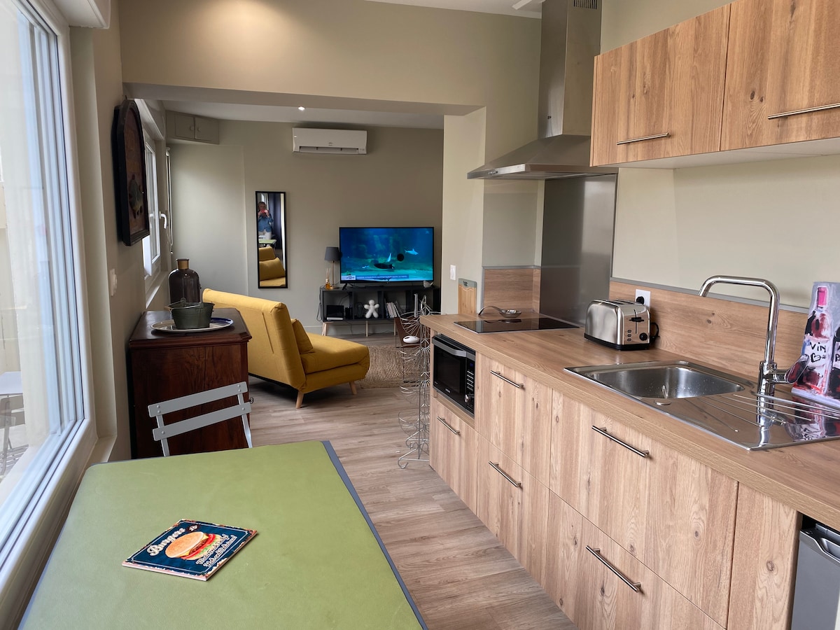 Situado en un hermoso edificio de piedra que data del siglo XVIII, este apartamento ha sido completamente renovado con un espíritu loft. Apreciará la tranquilidad y la comodidad, así como su ubicación en pleno centro de Burdeos. Apartamento en una 3.ª planta, sin ascensor. El apartamento consta de una amplia y agradable sala de estar de 32 m2, un dormitorio y un baño dúplex. Es posible acomodar a 2 niños en los 2 sofás de la sala de estar, cada uno equipado con un cómodo colchón de 80/200 cm. En la gran y agradable cocina bañada por la luz encontrará todas las comodidades: lavavajillas, lavadora, horno, microondas, placas de inducción, tostadora y cafetera Nespresso. Hay 4 aparcamientos públicos cerca, a entre 3 y 5 minutos andando. Atención el apartamento se encuentra en una tercera planta sin ascensor. Estaré a la disposición de los viajeros antes y durante toda su estancia para proporcionarles la información necesaria sobre la ciudad, sus actividades ... La prestigiosa dirección de este apartamento le permitirá disfrutar a pie de toda la ciudad de Burdeos: la plaza Gambetta, los Grandes Hombres y el Gran Teatro, pero también, por supuesto, los museos, las tiendas y los restaurantes. Usted se beneficia de todo el transporte público (autobús y tranvía) en las inmediaciones del apartamento, así como transporte al aeropuerto, taxis y aparcamientos públicos. Estará a 10 minutos en tranvía de la estación de tren de Saint Jean. Agradecemos a nuestros viajeros que respeten la tranquilidad del lugar, nuestro apartamento no es adecuado para hacer fiestas.
