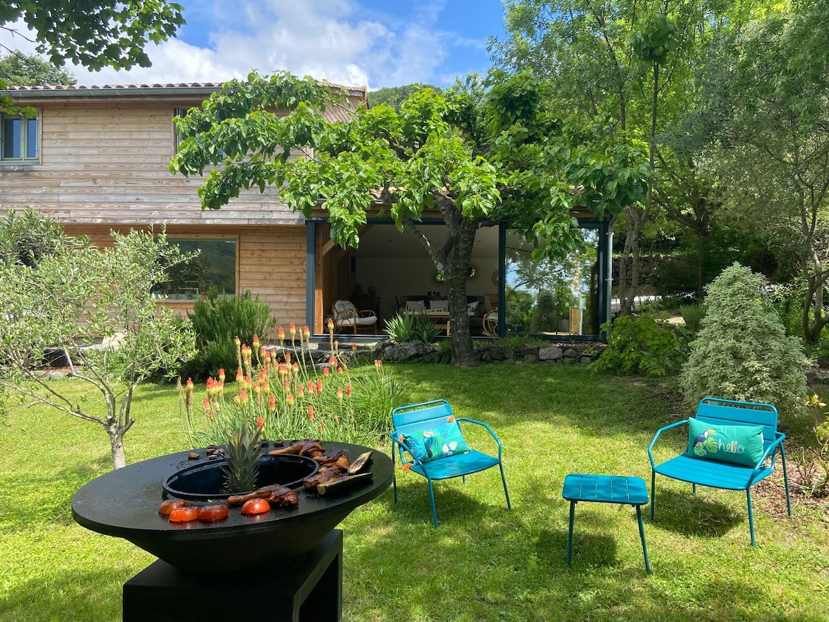 Masía de piedra con encanto, con aire acondicionado y red wifi-fibra. Jardín de flores y árboles. Piscina, huerto con frutas de temporada ( manzanas, cerezas, membrillos)..Terraza sombreada, con brasero y piscina contigua. Acceso privado al bosque cercano para dar un paseo. Zona de relajación con juegos al aire libre disponibles: tenis de mesa, mikado molkky gigante, petanca. Para los deportistas, descenso del Ardèche, barranquismo y tenis cerca. Gastos de limpieza incluidos sábanas y toallas para 6