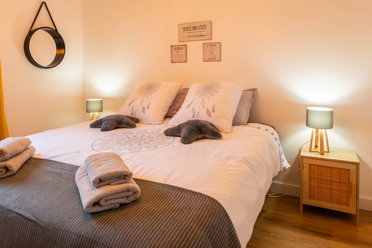 Se alojará en una habitación privada con una zona de baño y aseo privados, tranquila, lejos del tráfico. En la prolongación de nuestra antigua casa de campo reformada, accederá a su habitación a través de una entrada independiente. Está en la ciudad mientras disfruta de un rincón del campo. Aparcamiento gratuito cercano. A 10 minutos del centro de la ciudad en coche, a 5 minutos de una parada de autobús. Tiendas de comestibles, panadería a 5 minutos.