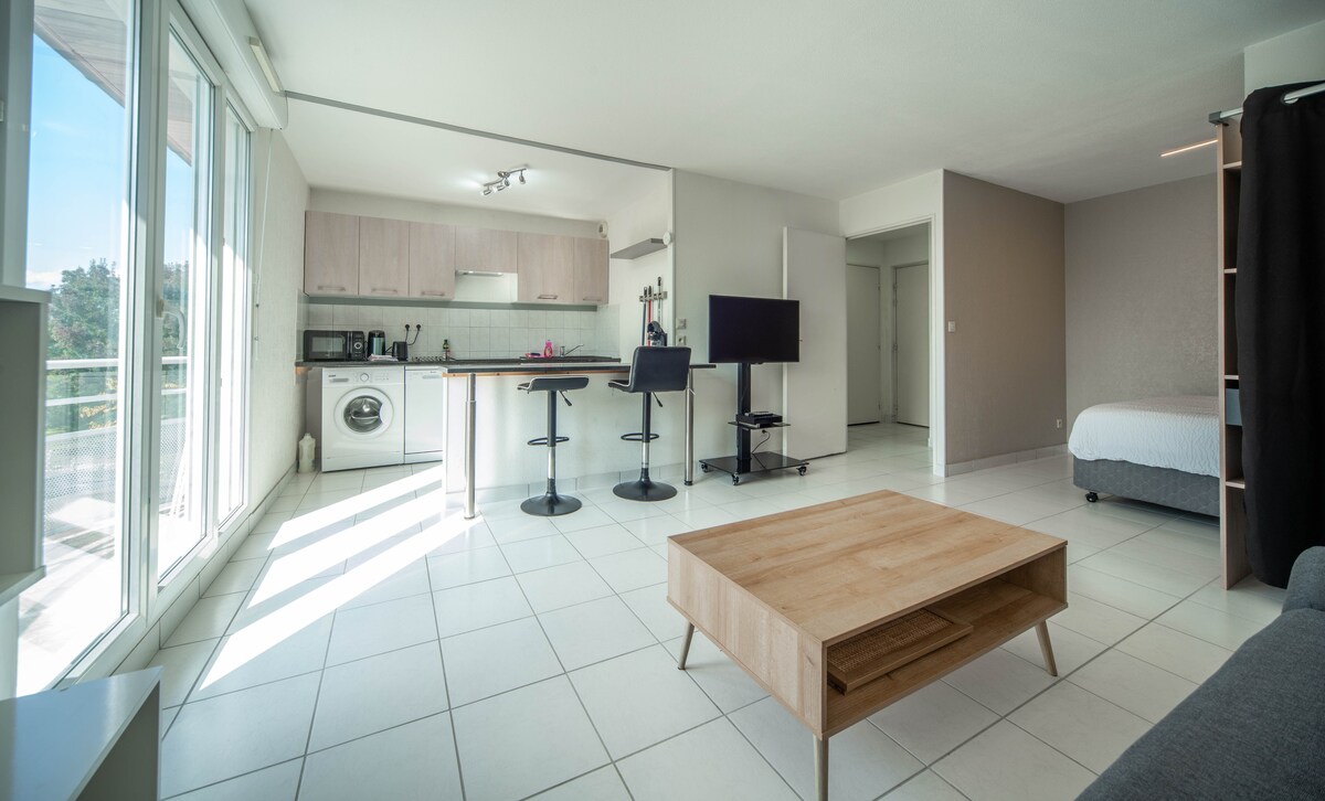 Situado a la salida de la autopista en una zona tranquila y silenciosa, mi apartamento es la solución ideal para descansar y pasar un buen rato en Chalon-sur-Saône. Está equipado con todo lo necesario para su estancia. Cerca del apartamento tiene un supermercado🛍️, terminales tesla y otros para recargar su vehículo⚡️⚡️, un gimnasio Basic fit 🏋️♂️ y restaurantes 🍕🥪🥙 Será un placer recibirle 👍 Ubicación: tenga en cuenta que está más cerca de la autopista que del centro