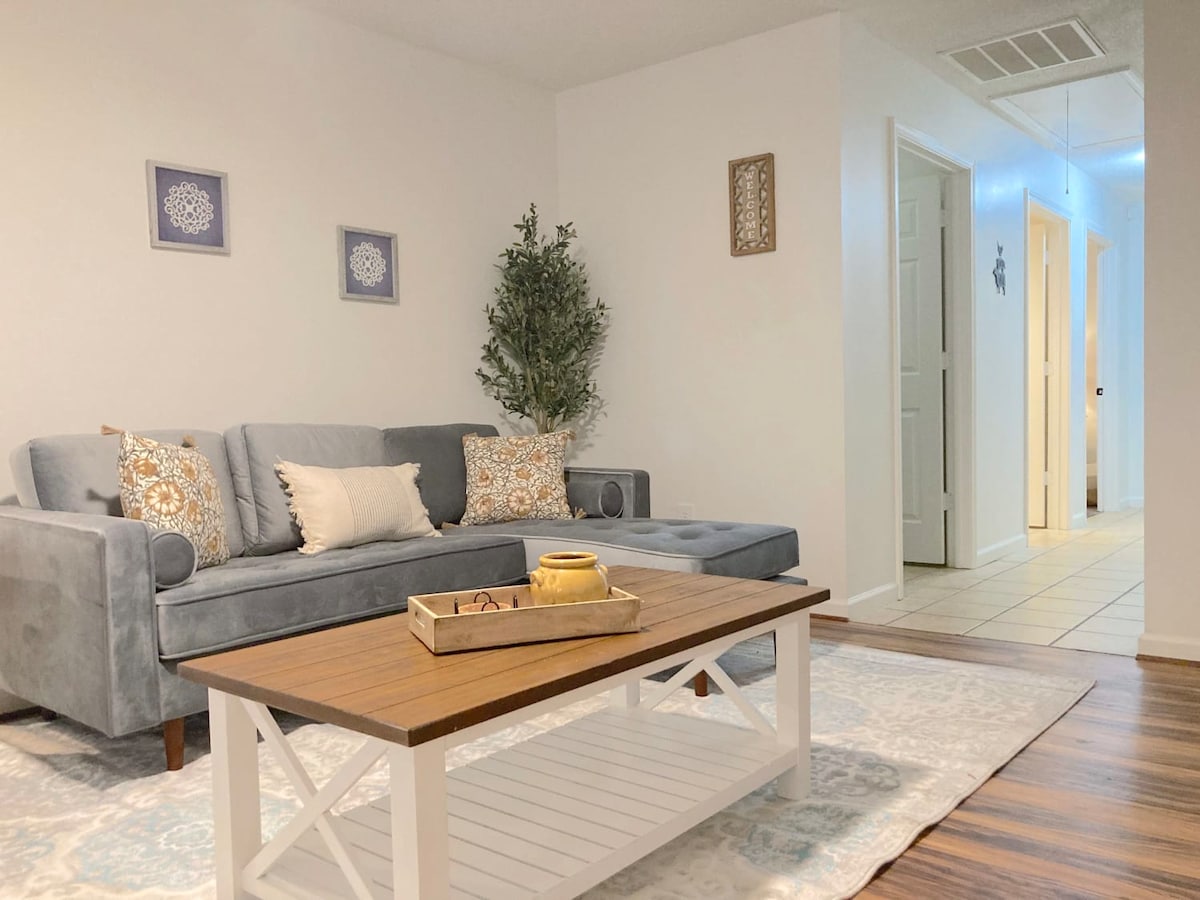 Te damos la bienvenida a nuestra casa bellamente amueblada y de estilo elegante. Este espacio es un lado de un dúplex y te ofrece una cochera privada y una entrada. Perfectamente ubicado cerca de Berry College, Shorter University, Sam 's Club, Harbin Clinic y Berry Tennis Center. Disfruta de 3 dormitorios, cada uno con una cama tamaño king. No se requieren escaleras para el acceso a la unidad; se proporcionan sábanas y lavandería para tu comodidad. Este alojamiento se encuentra en un barrio prometedor, perfecto para viajeros aventureros.