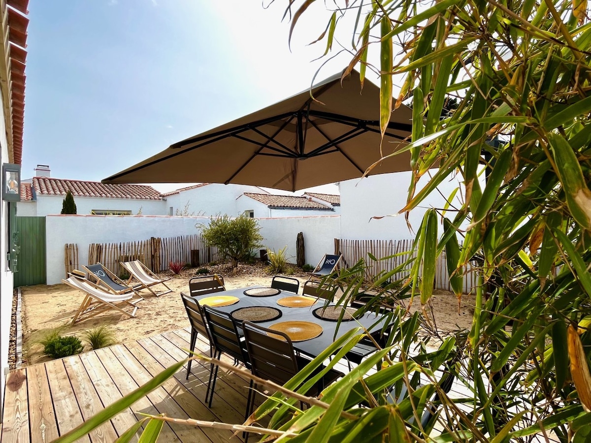 Entre le Centre Ville et le Bois de la Chaize, "Les Sardines", maison neuve (2022) est parfaitement située pour vos vacances. Les plages du Nord Est et le quartier Centre Ville accessibles à pied ou à vélo, pour votre plus grand bonheur. La maison "Les Sardines" décorée avec attention, est composée d'une grande pièce de vie très lumineuse, avec cuisine aménagée et équipée, 3 chambres, 2 salles d'eau. Le jardin exposé plein sud, arboré, avec terrasse, transat et barbecue vous ravira.