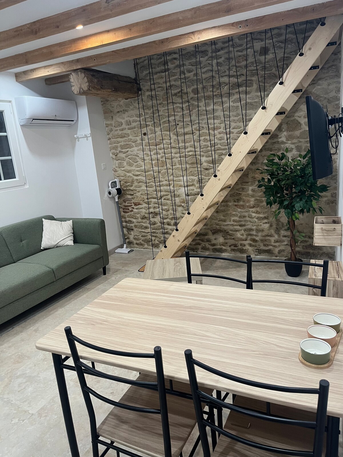 Casa en planta alta de 100 m2 situada en una calle tranquila de Montier-en-Der. En la planta baja encontrará una cocina totalmente equipada (SENSEO), abierta a la sala de estar que incluye una sala de estar. La planta superior consta de dos dormitorios, uno de ellos con vestidor, aire acondicionado y TV para cada dormitorio, un sofá cama también está disponible en el altillo, luego el baño. En cuanto a los exteriores, podrá disfrutar de una bonita terraza semicubierta equipada con barbacoa, muebles de jardín y tumbona