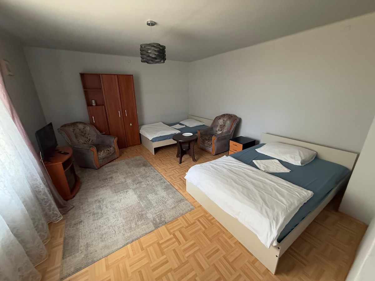 ¡Este lugar único tiene su propio estilo! Terminado con un alto nivel. El departamento está ubicado en el tercer piso en un acogedor bloque de tres escaleras. El departamento está totalmente equipado con artículos de uso diario, internet de alta velocidad. El barrio es tranquilo y pacífico, y el parque infantil frente a la cuadra ofrece a los niños un lugar para jugar sin preocupaciones. A pocos metros del apartamento hay una parada de autobús y una estación de tren. También hay tiendas locales, restaurantes, peluquería, farmacia y un mercado en la zona.