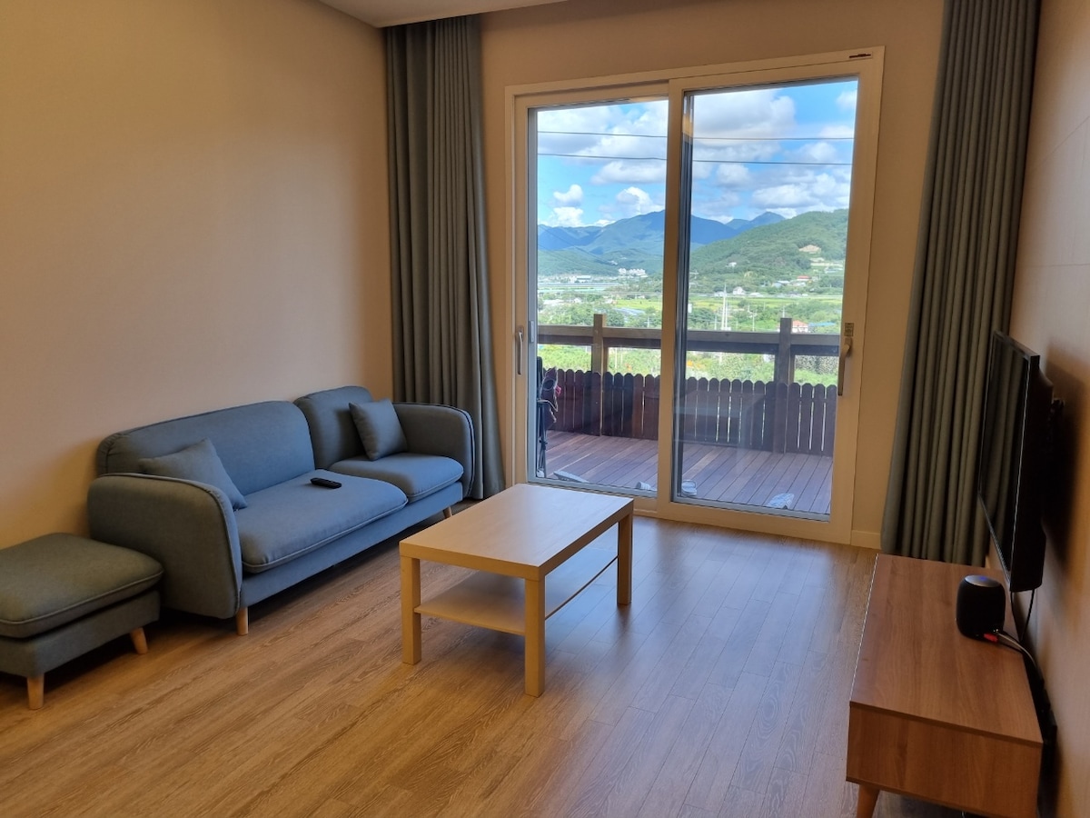 Hola :) Este es Skyview en Chuncheon. En Skyview, puedes usar el jardín verde solo y está ubicado en un pueblo tranquilo. Cuando necesite descansar de la rutina diaria, respire el aire fresco y disfrute de la hermosa y pacífica vista de la montaña, que le brinda el mejor descanso. Por la noche, el cielo está lleno de estrellas y puedes disfrutar de la emoción de ver las estrellas en el cielo nocturno con tus seres queridos. Puedes disfrutar de una deliciosa barbacoa de manera fácil y cómoda en la barbacoa con encanto glamping de Skyview. Es una pensión de vistas que puede crear recuerdos memorables, como viajes en familia, viajes en pareja y viajes de amigos. ^^