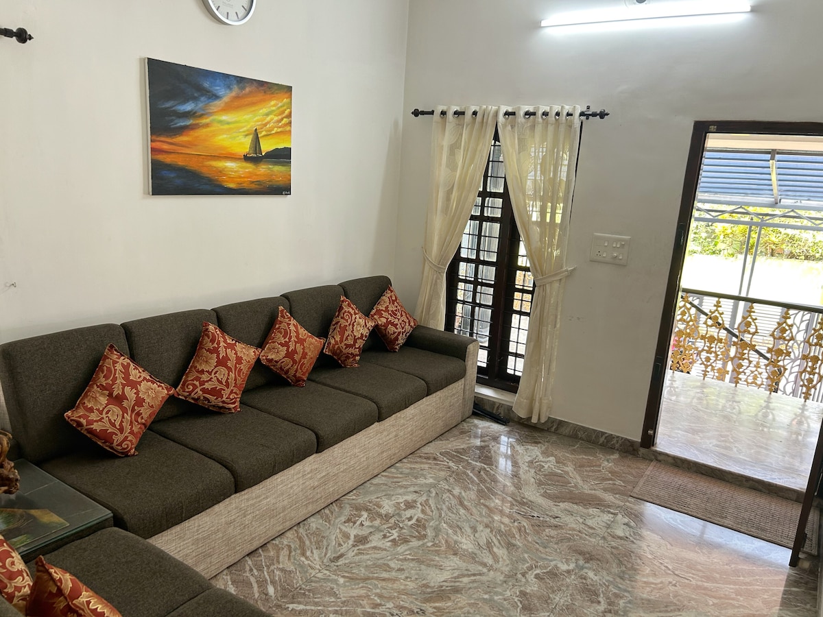 🌿 Esta elegante villa de 2BHK completamente amueblada es una de las dos villas en un complejo cerrado de 40 centavos. 🏡 Convenientemente ubicado cerca de la autopista que conecta el Aeropuerto Internacional de Cochin y Ernakulam. A pocos pasos de la estación de metro, que ofrece acceso rápido a las principales atracciones de la ciudad. 🛏️ LO más destacable: Complejo cerrado privado con amplio espacio de estacionamiento. Ideal para familias que buscan seguridad, comodidad y conveniencia. Nota: Solo aceptamos grupos familiares. Para otros huéspedes, envíanos un mensaje antes de reservar.