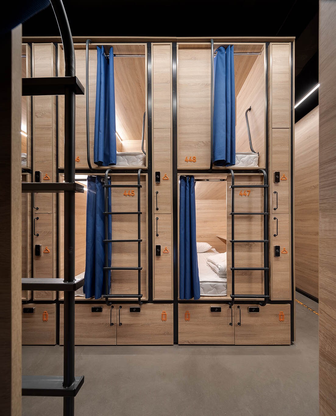 Habitación Familiar con literas (para 4 personas): una habitación moderna para viajes en familia o en grupo, que cuenta con una litera además de una cama tamaño queen. La habitación viene con baño privado con ducha, mini-nevera, aire acondicionado, hervidor eléctrico, armario abierto y una mesa de café. Los huéspedes pueden acceder a una cocina compartida de tamaño completo que se encuentra en el piso base.