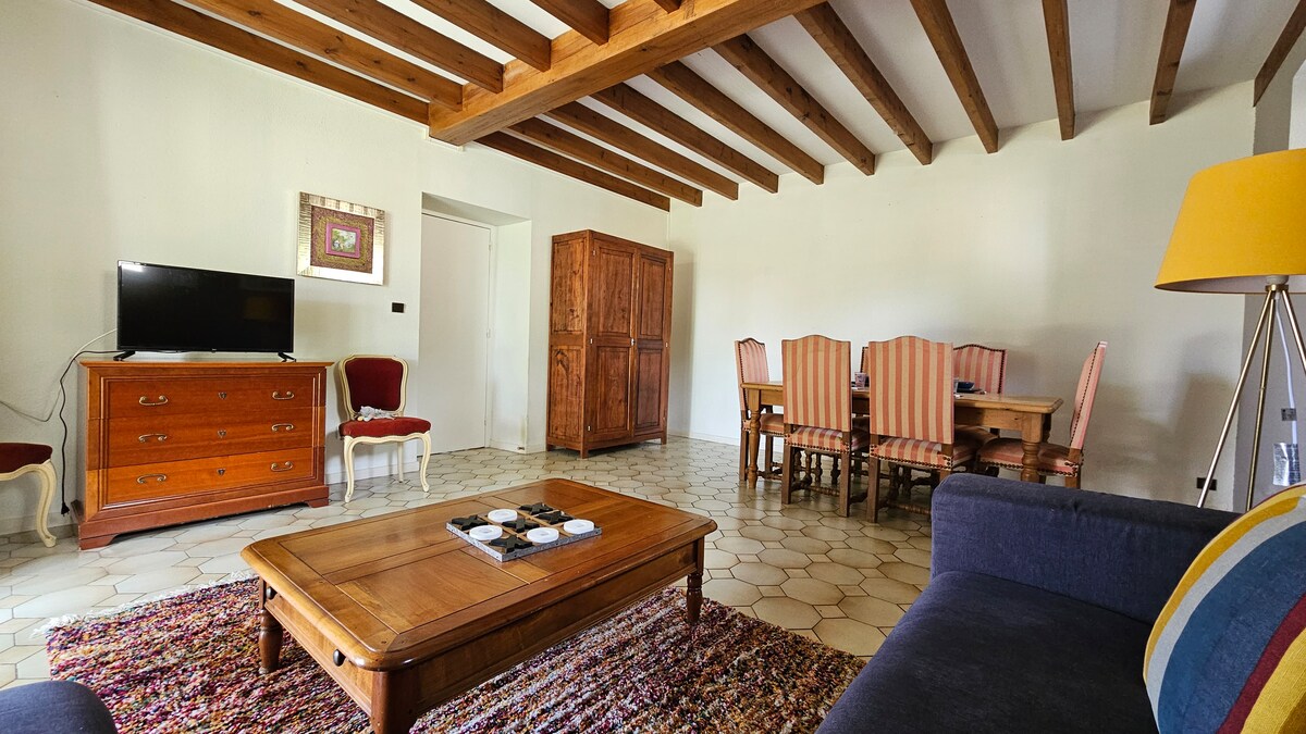 Presentamos nuestro encantador departamento totalmente renovado ubicado en el corazón de Ribérac, Dordoña. Ofrecemos todas las comodidades necesarias, incluido wifi y estacionamiento gratuito cerca. El departamento está idealmente situado cerca de la Oficina de Turismo y justo en el corazón del mercado de Ribérac. Todos los negocios, restaurantes y servicios están a pocos pasos. El barrio es tranquilo y agradable, perfecto para disfrutar de una estadía sin auto. Ideal para una escapada relajante.
