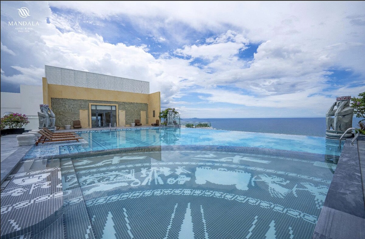 ¡Escapada junto a la playa en Phú Yên! con vista al mar. Quédate en nuestro moderno departamento APEC Mandala de 1 dormitorio a pocos pasos de la playa de Tuy Hòa, restaurantes de mariscos y cafés. Perfecto para parejas o viajeros solos, cuenta con un dormitorio acogedor, un baño elegante, una cocina pequeña y un balcón con brisa marina. Disfrutá de aire acondicionado, wifi rápido y servicios del complejo vacacional, como una piscina infinita en la azotea, una piscina para huéspedes y un gimnasio. ¡Tu escapada ideal a Phú Yên te está esperando! Vas a recibir las instrucciones para hacer el check-in 1 día antes de la llegada