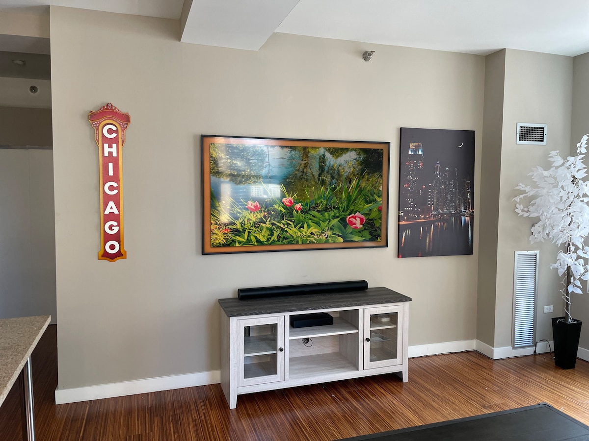 Situado en el epicentro de las atracciones culturales, históricas y de negocios de Chicago, este lujoso apartamento de 2 dormitorios ofrece a los huéspedes todas las comodidades del hogar, ya sea por trabajo o por placer. A poca distancia a pie se encuentran atracciones de fama mundial como: Millennium Park, The Bean, Navy Pier, Riverwalk, Soldier Field, The Field Museum y más. Además, los huéspedes están a solo un par de manzanas de una parada de tren «L», que transportará a los pasajeros a cualquier lugar que deseen en la ciudad.