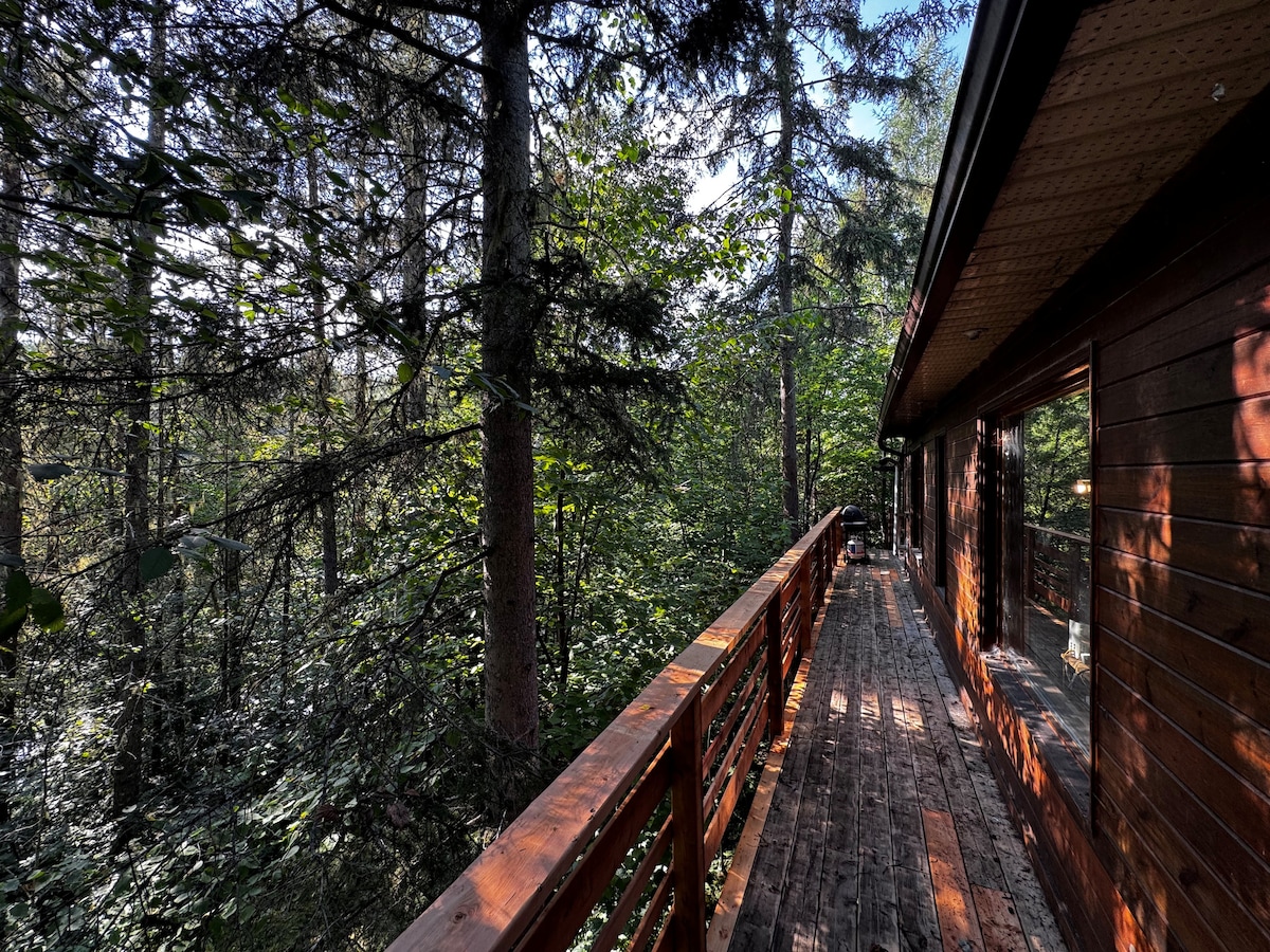 This magnificent residence is located on the banks of the Saguenay River in Chicoutimi, right near the action. Carefully prepared and fully equipped so you won’t miss a thing, this warm and cozy nest is ready to welcome you during your stay in Saguenay. With a view of the Saguenay River and the Monts-Valin, you’re in the heart of the city and within walking distance of downtown Chicoutimi as well as a Metro grocery store.