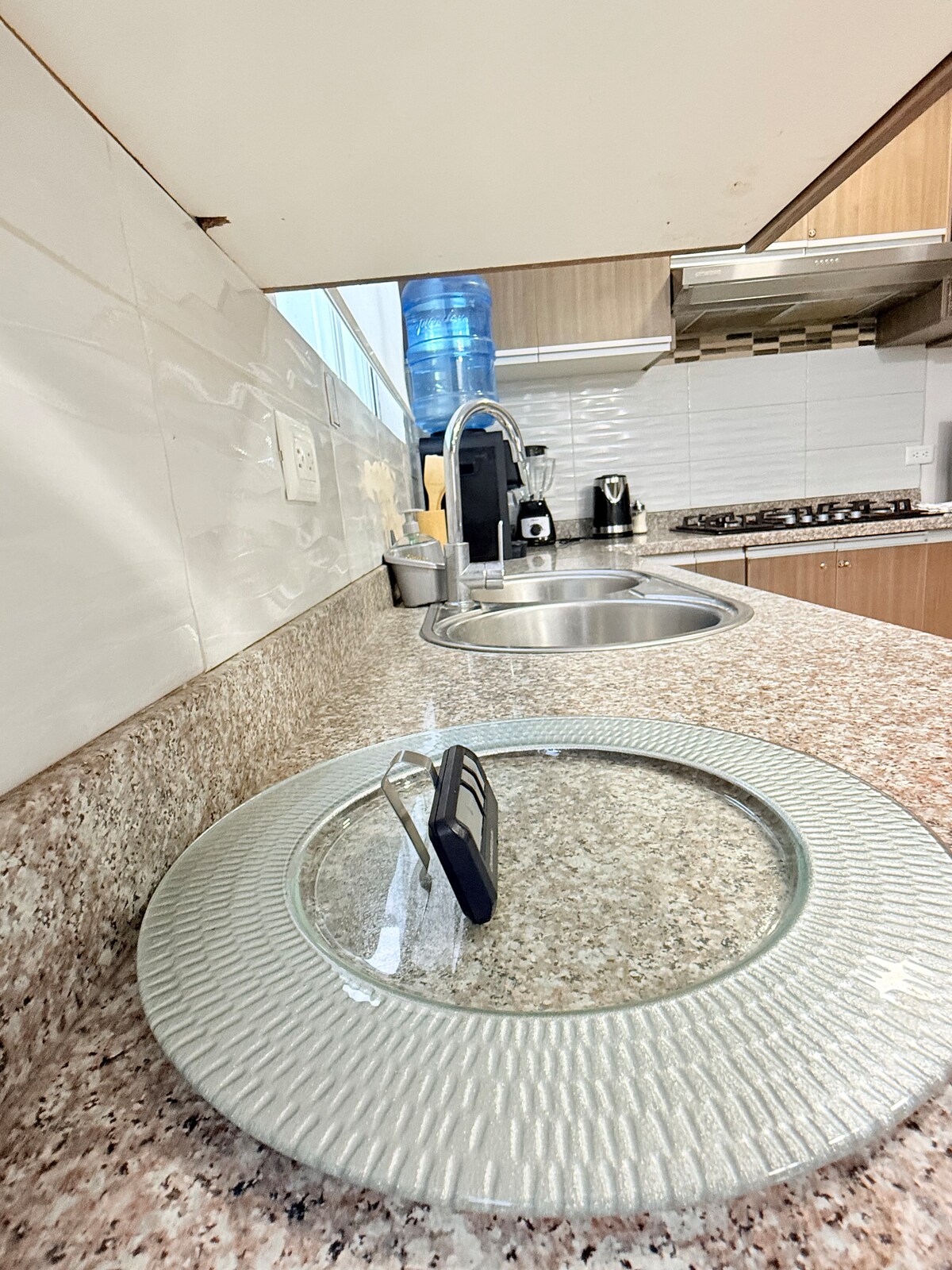 Vive la tranquilidad que mereces en un departamento dentro de conjunto privado con parqueadero y cámaras de seguridad, donde tu paz es prioridad. Disfruta de espacios luminosos, camas confortables y cocina equipada que te harán sentir en casa. La limpieza extrema en cada rincón te ofrece la certeza de hospedarte en un lugar impecable pensado en tu bienestar. A 8 minutos del centro de Riobamba, a solo 50 m encontrarás farmacias, restaurantes, minimarkets, con la comodidad de tenerlo todo cerca.