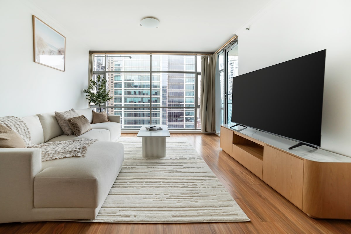 Siente la emoción de estar a solo un ascensor de distancia de las actividades del puerto. Admira las paredes llenas de arte vanguardista y cautivador, y relájate en un cómodo sofá de cuero. Tómate algo por la noche en el balcón y duerme en dormitorios con vistas al horizonte de la ciudad y al puerto. Sabemos que te sentirás como en casa con las súper cómodas y modernas habitaciones, con armarios empotrados y televisores. Google Chrome también está disponible en el televisor principal de la sala de estar. Estoy seguro de que te encantará volver y relajarte después de un día o una noche disfrutando de todo lo que ofrece Sídney. ¡No querrás marcharte!