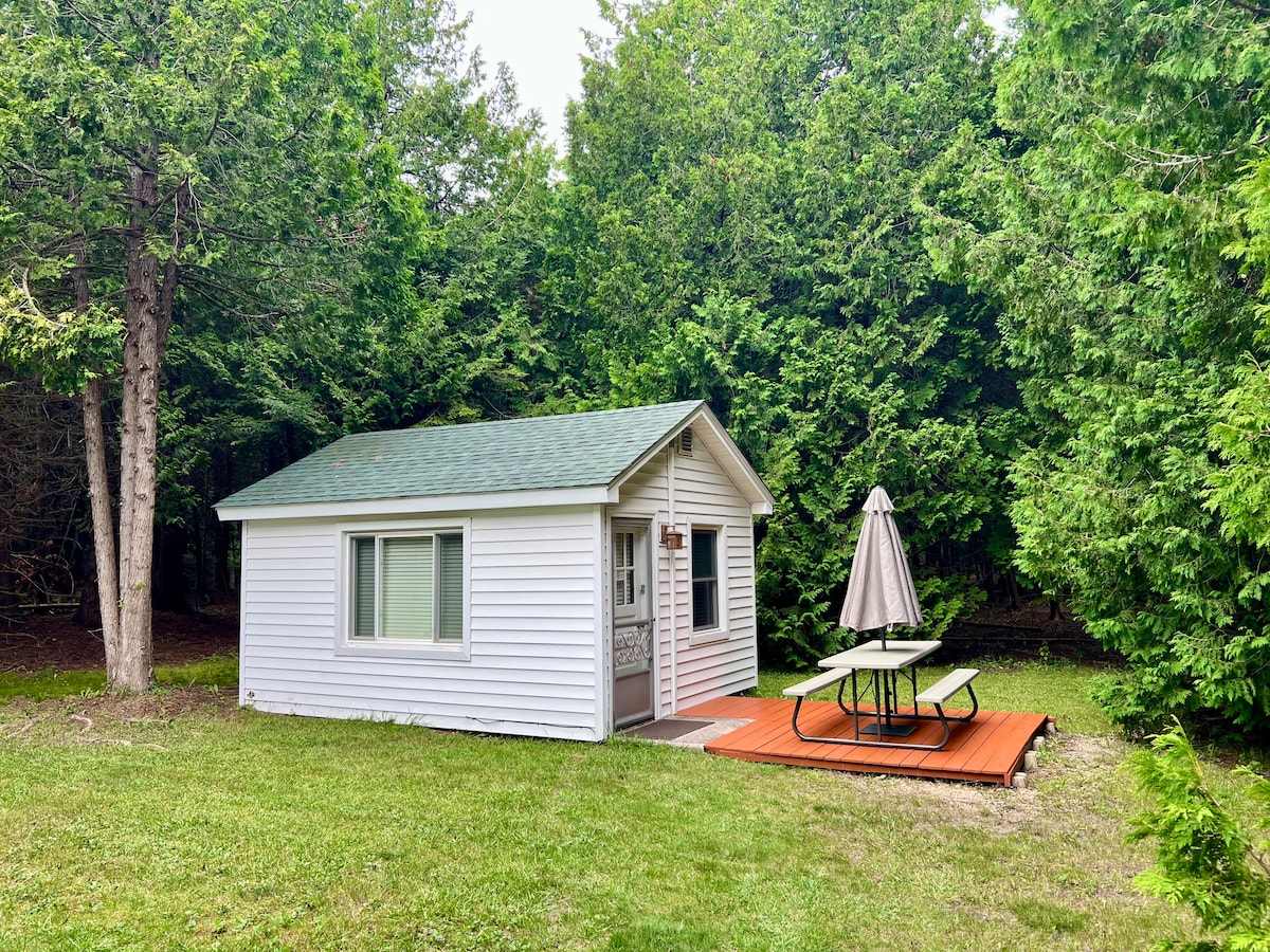 Hay 2 camas dobles en esta habitación. Tiene zona de cocina con nevera. Compartes el porche cubierto cerrado si hay otro huésped en la habitación #7. La habitación tiene vistas al lago Michigan. La propiedad es la razón por la que te alojas aquí. Descansa y relájate en la antigua usanza. Trae un libro para leer. La tranquilidad y la serenidad de poder usar los terrenos es la razón por la que querrás alojarte aquí. Una gran habitación con baño privado es casi secundaria.