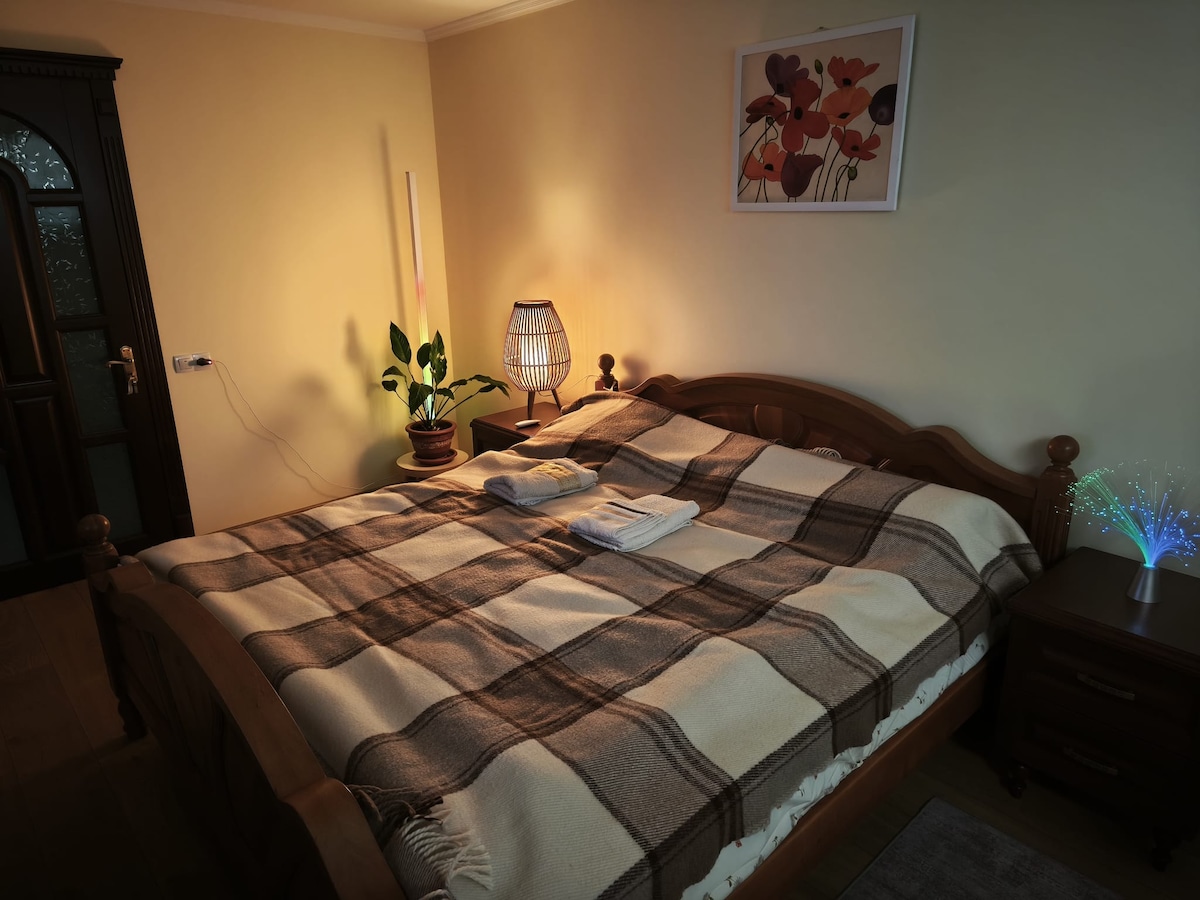 Precioso departamento en Chișinău con las siguientes características: 🛏️ 1 dormitorio y un living amplio ❄️ Aire acondicionado para una estancia cómoda Cocina 🍽️ totalmente equipada con heladera y cafetera 🚿 1 baño con bidé y ducha Wifi 📶 gratuito y hermosas vistas de la ciudad 🌿 Acceso a un jardín y una terraza privados Bar 🍸 cercano para momentos de relax Ubicación 📍 privilegiada cerca de las principales atracciones: Cathedral Park. Catedral de la Natividad Arco triunfal de Chisináu